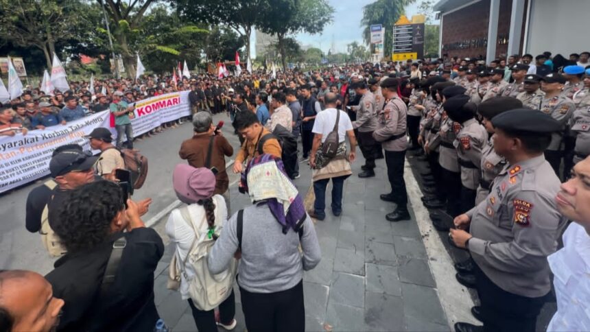 PERSADARIAU, PEKANBARU – Kantor Kejaksaan Tinggi (Kejati) Riau dikerumuni oleh ribuan masyarakat dari sekitar Taman Nasional Tesso Nilo (TNTN), Kamis (20/11/25).