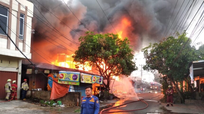Api menghanguskan beberapa unit rumah dan kios milik warga yang berada tidak jauh dari mesjid Fastabiqul Khairat.