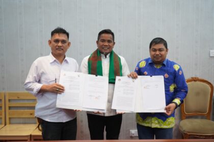 PERSADARIAU, PELALAWAN — Bupati Pelalawan H. Zukri SE menyaksikan Penandatanganan Naska Perjanjian…