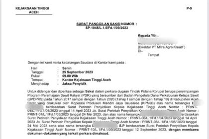 Direktur Berinisial MD Dipanggil Kejati Aceh, Terkait Kasus Dugaan Korupsi Replanting Sawit Aceh Barat