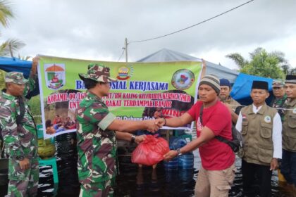 Koramil 09/Lgm Dan Forum RT/RW Bagikan Sembako Kepada Korban Banjir Pangkalan Kerinci