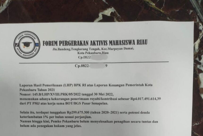 2. Menuntut Walikota Pekanbaru agar menindak tegas pejabat yang lalai dalam penagihan royalti serta melakukan evaluasi menyeluruh terhadap seluruh kerja sama aset daerah.