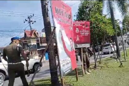 Rusak Keindahan Kota, Satpol PP Copot Puluhan Baliho Kampanye